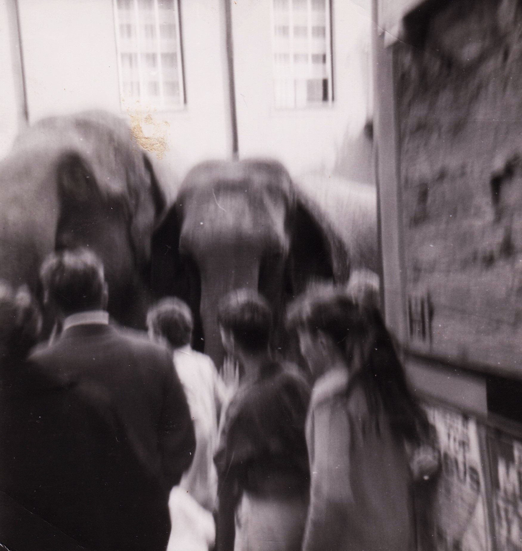 No, seriously just a few elephants wandering around the town trying to promote a circus which had just arrived.