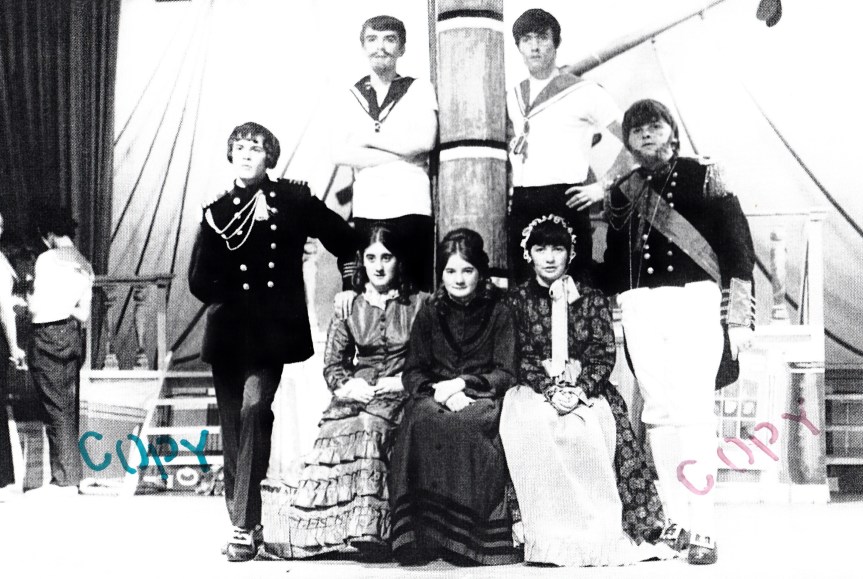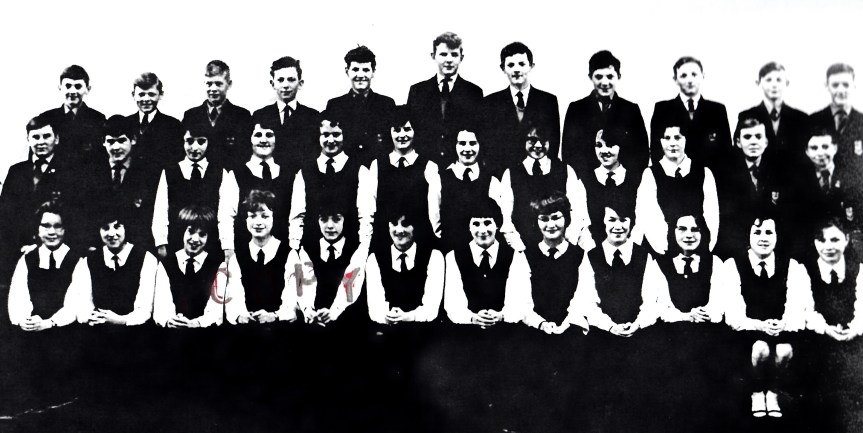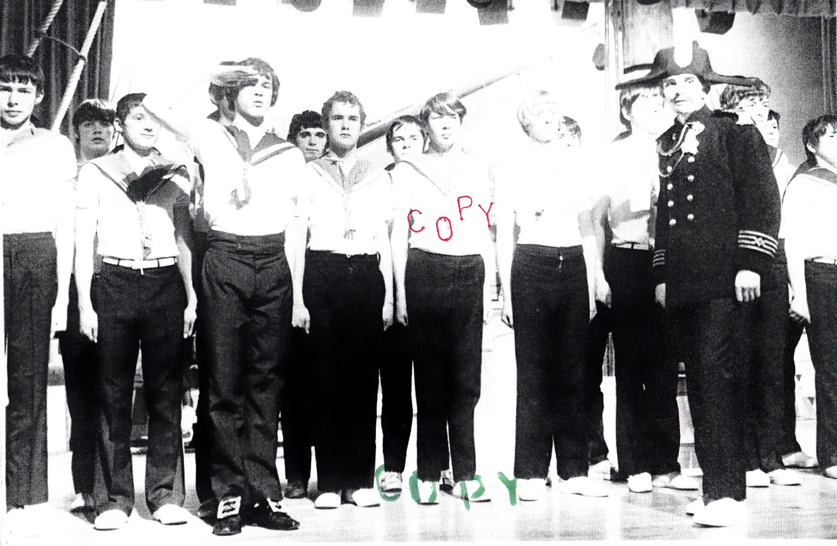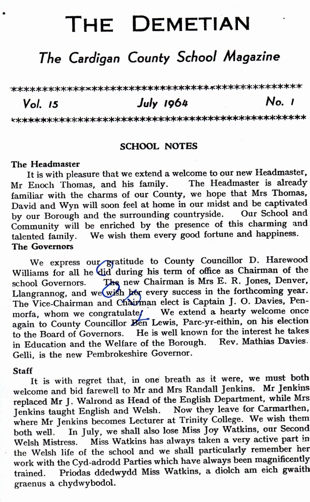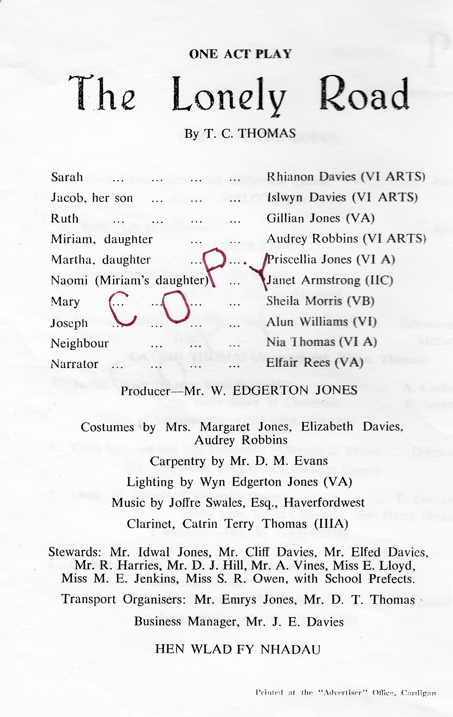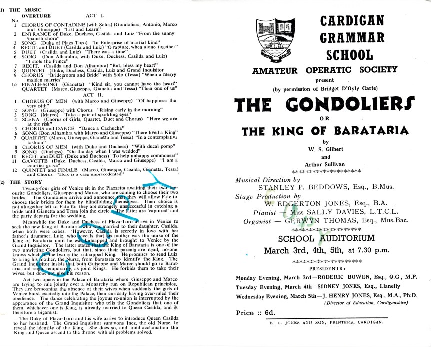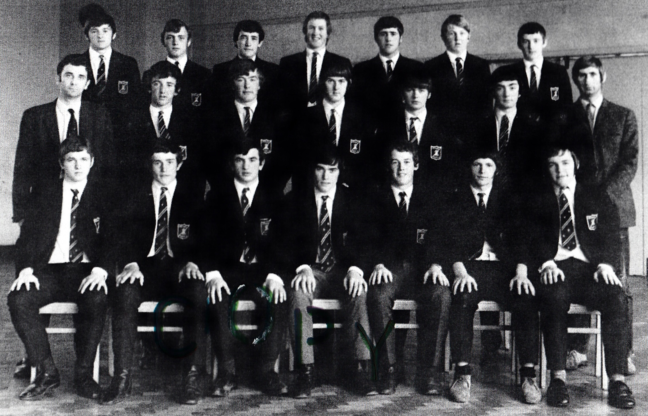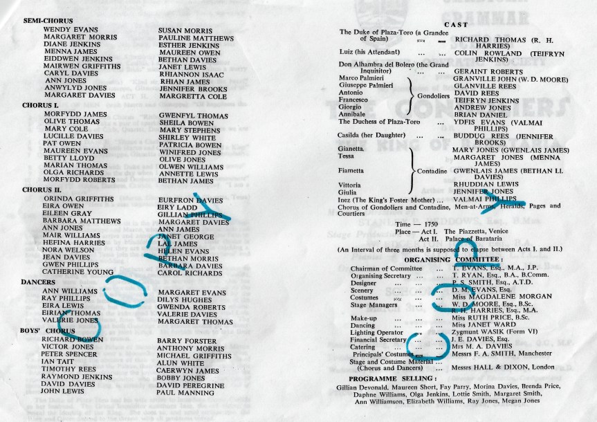 Back row, l-r: James France, Malcolm Morris, David Underhill, Barry ?, Hywel Smith, David Evans, Geraint Lewis, John Prytherch, Kenneth Thomas, Phillip Davies, Gerallt Morgan