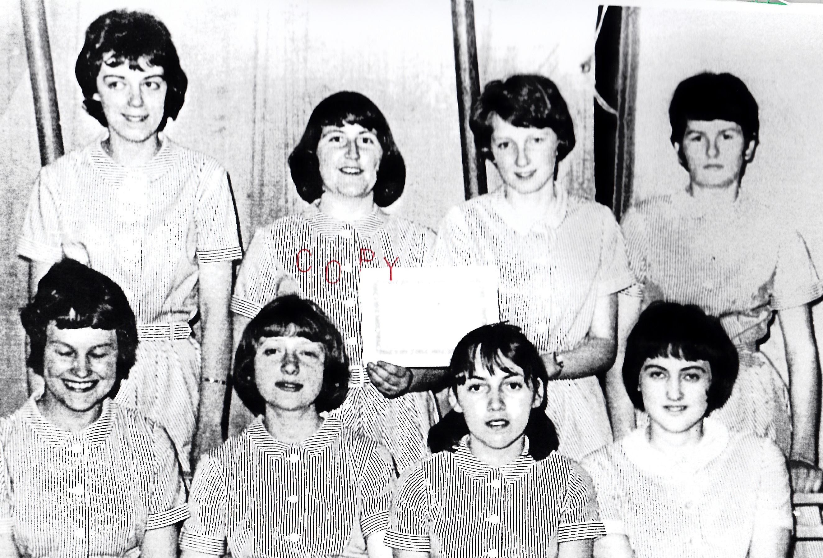 Front row, l-r: Barbara Howells, Sheila Davies, Christine Braybrook, Glenys Owen, Angela James, Non Rowlands, Sandra Roberts, Katherine Plowright, Frances Dowding, Jacqueline Pearce, Nest Lewis, Heidi Robens.