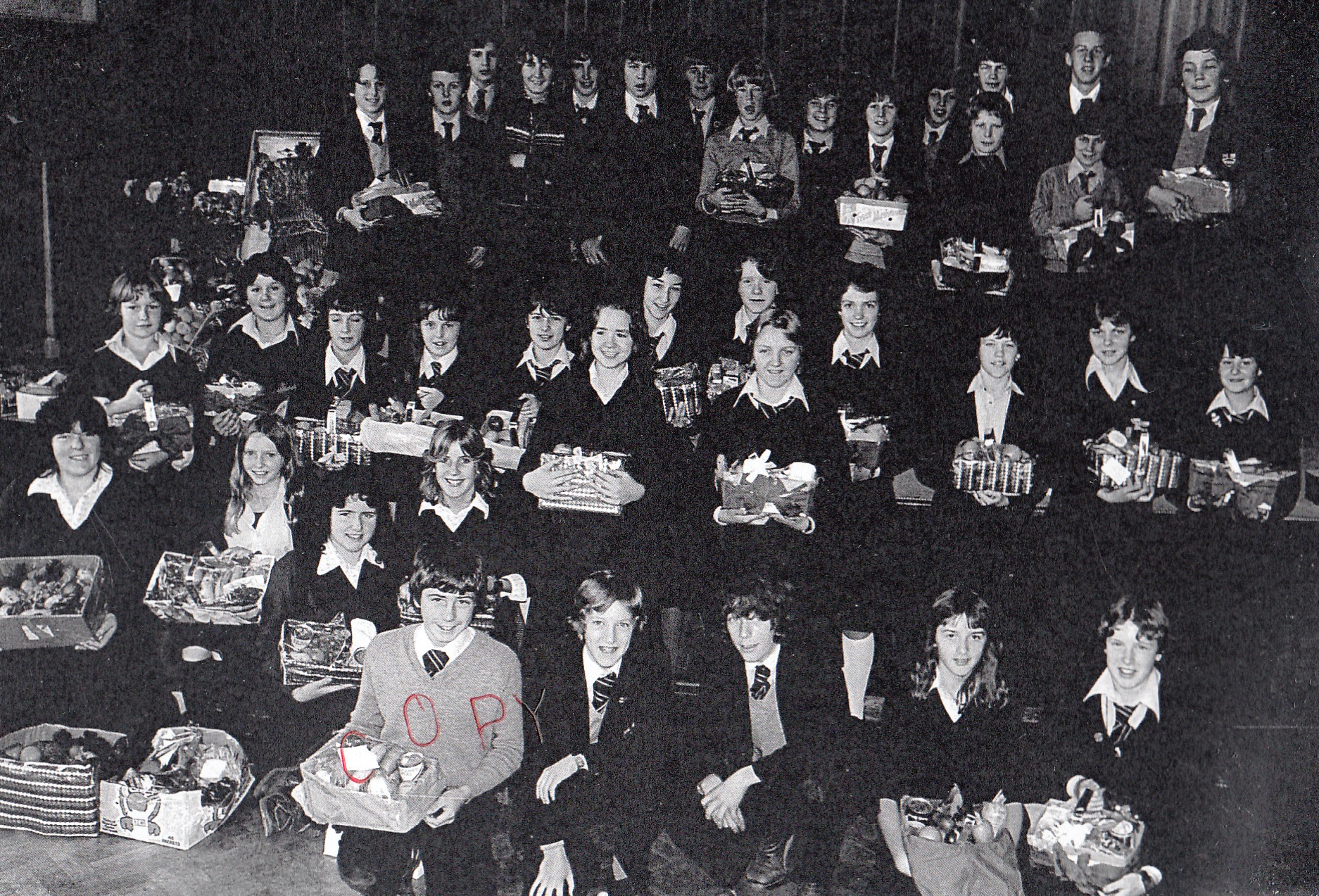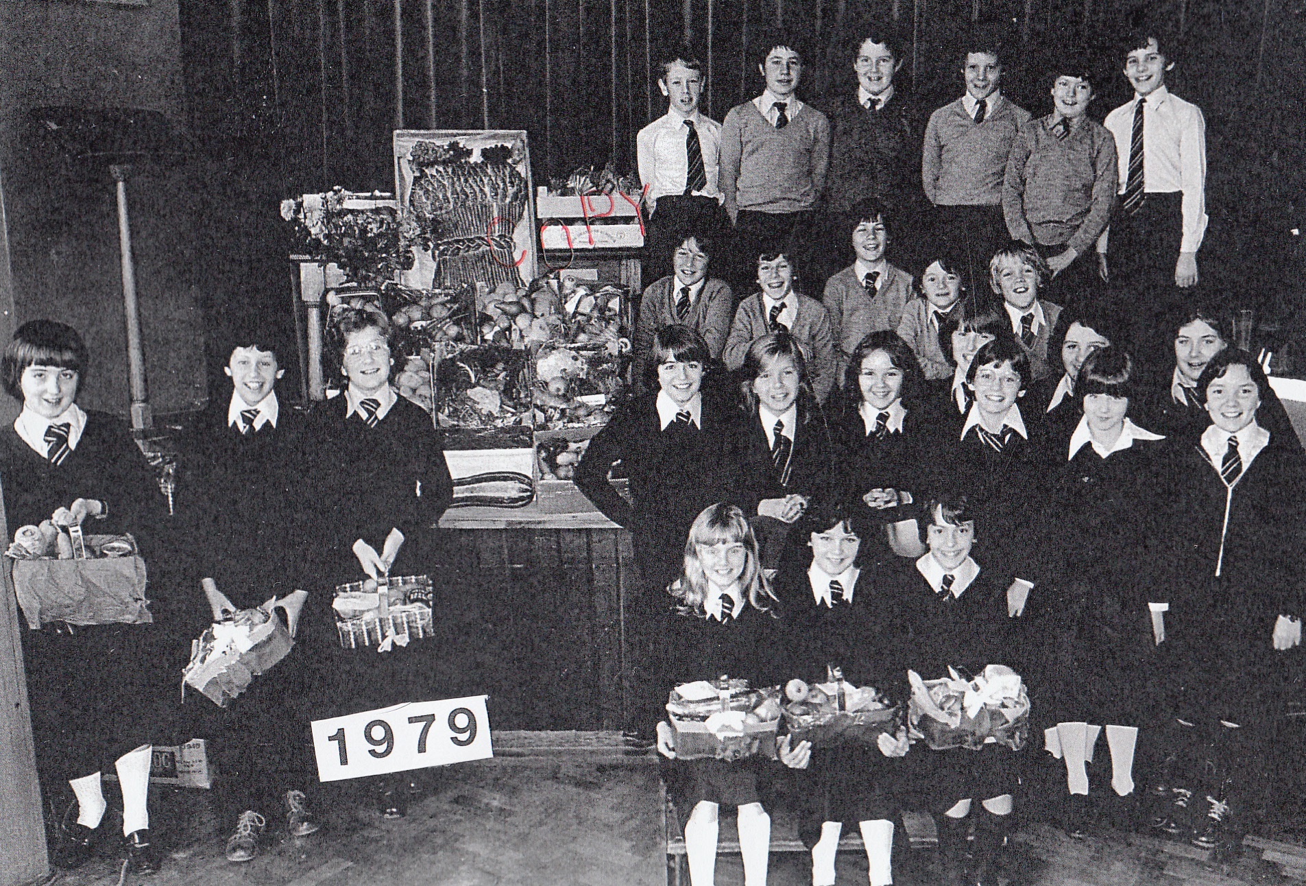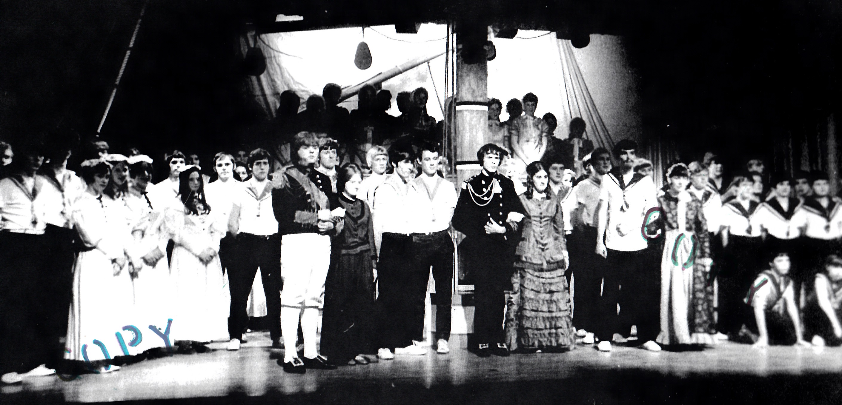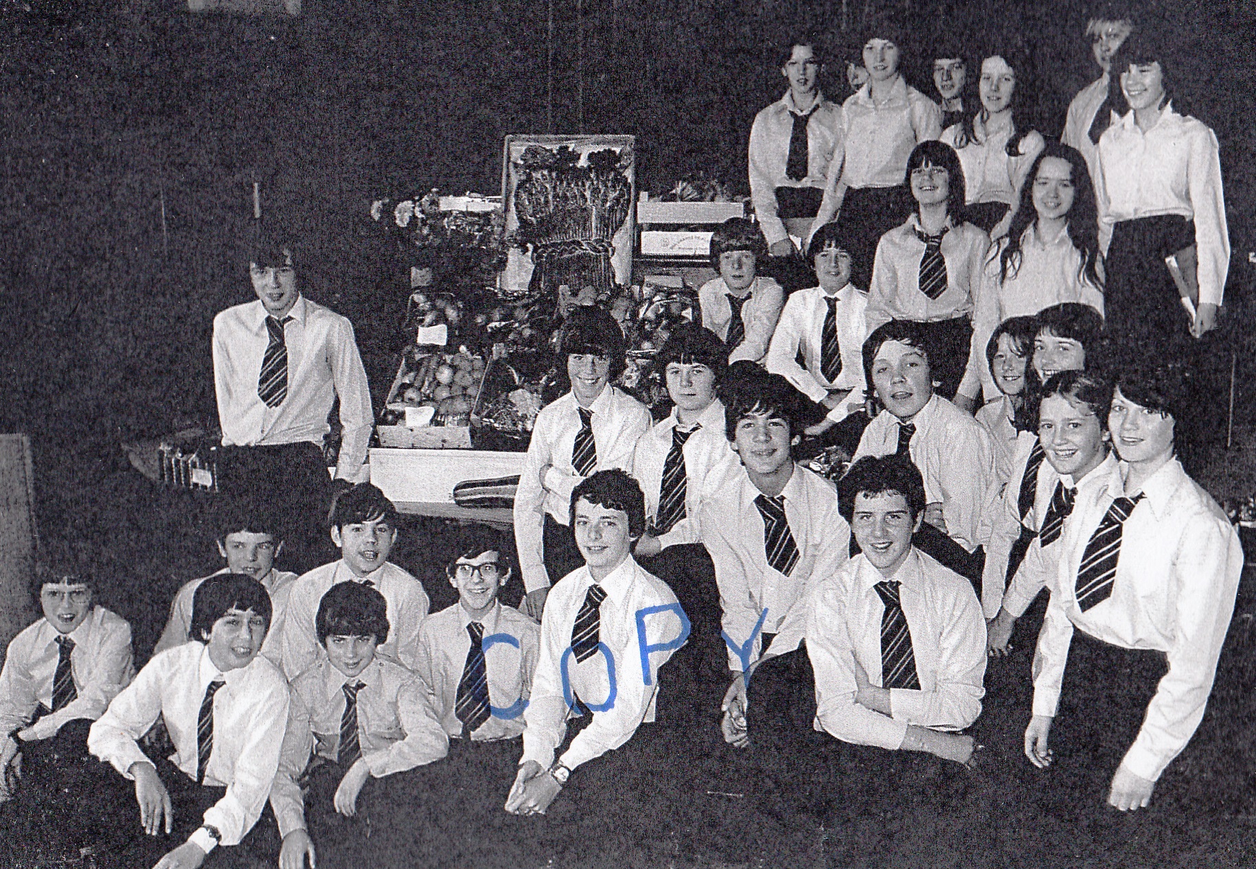 2nd row, l-r: Ann Jones; Marlene Davies; Ann ?; Dorothy Jenkins; Bethan Jones; Ann Thomas; Elaine Thomas; Dai Moses; Eryl Lewis; Reg Dyer; Russel Hume; John Adams Lewis; Trevor Evans; Graham Hope.