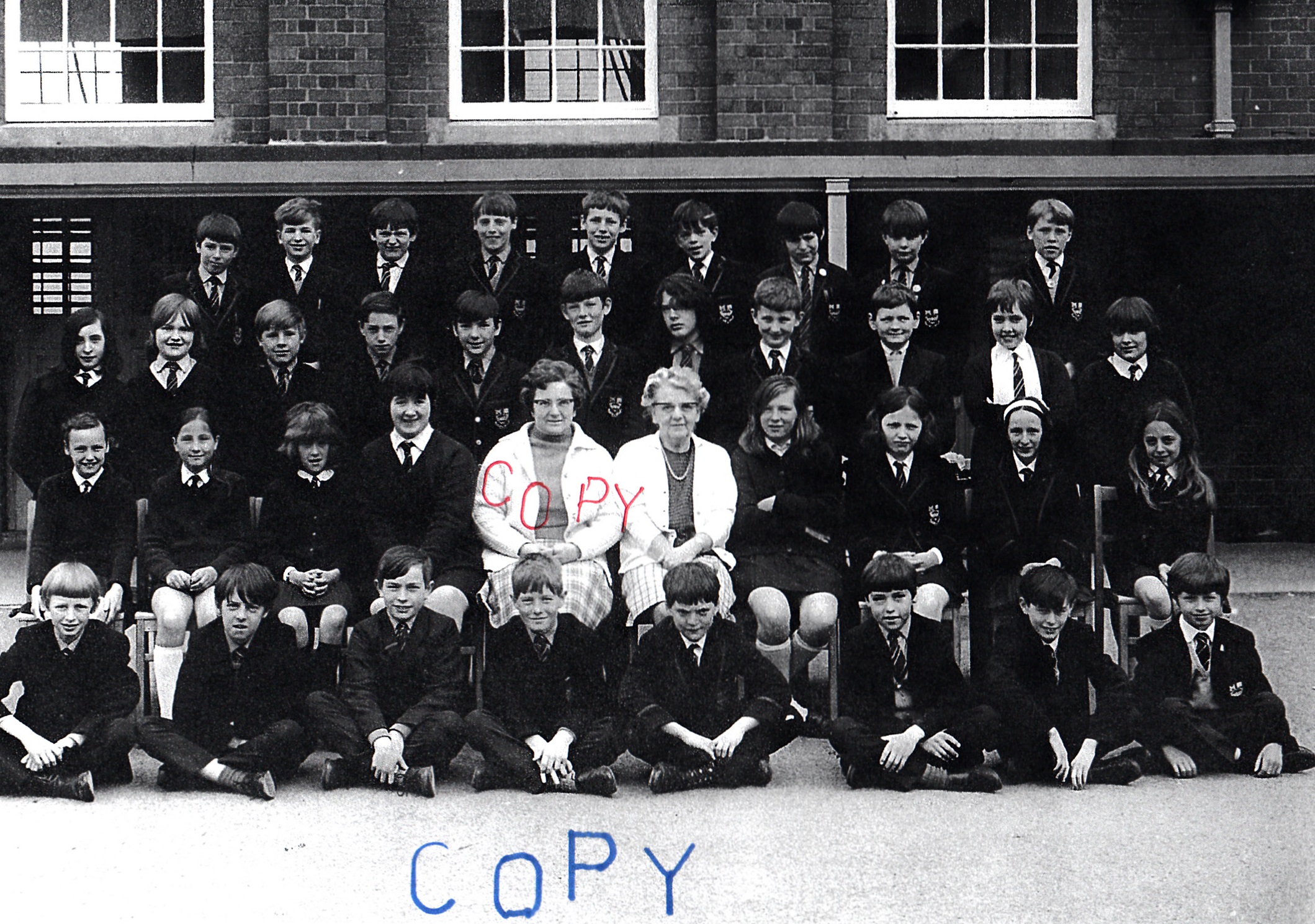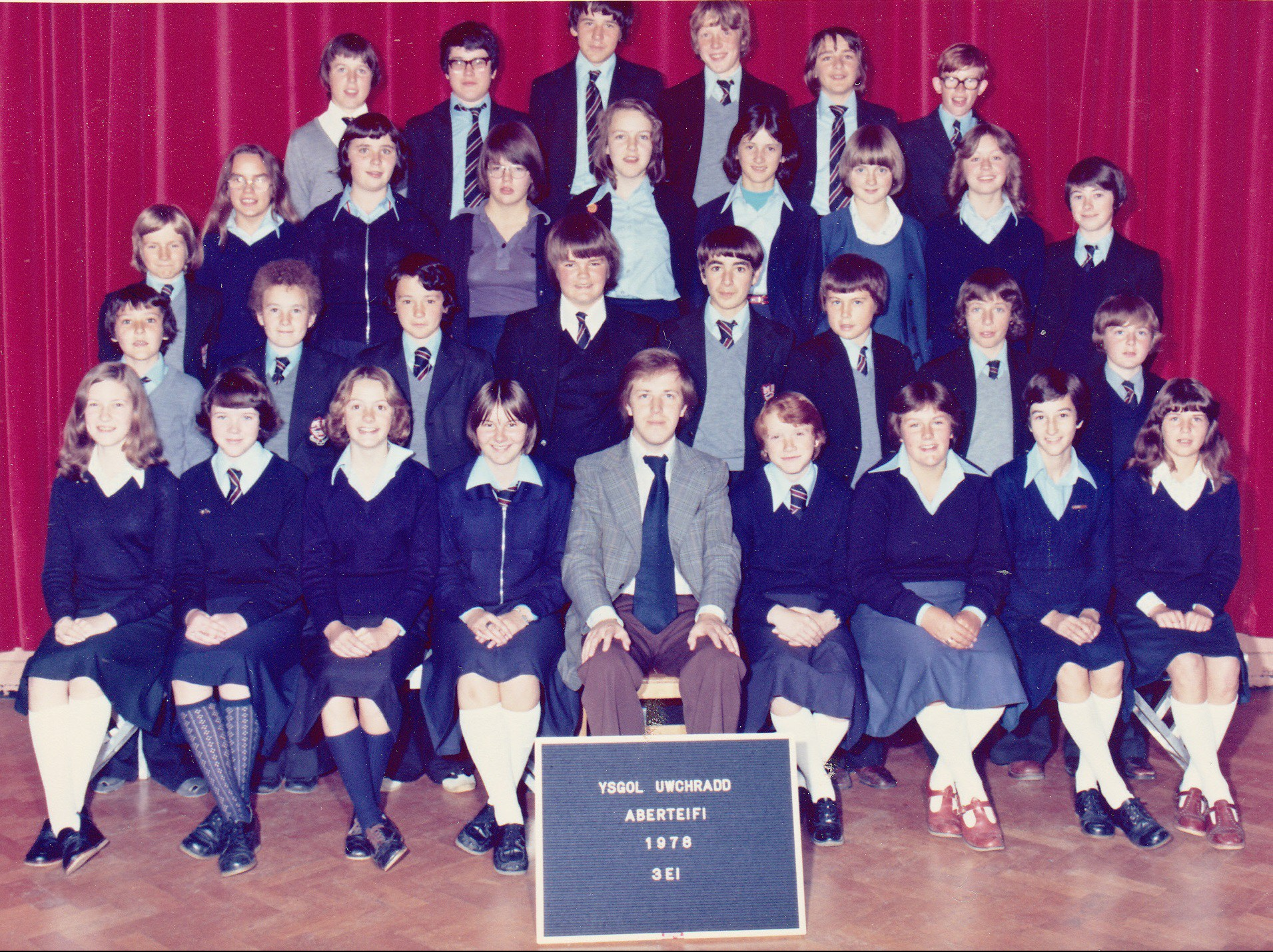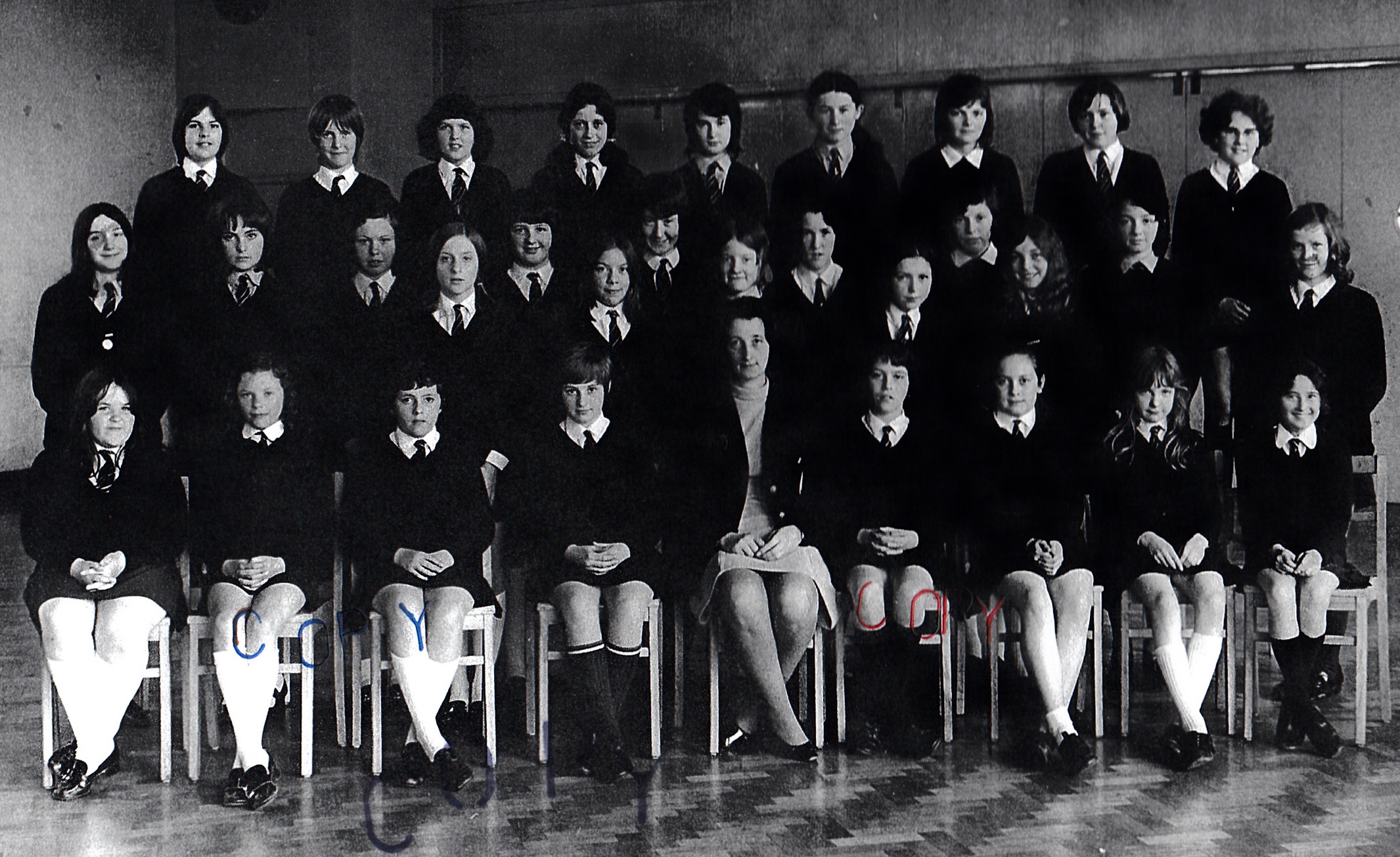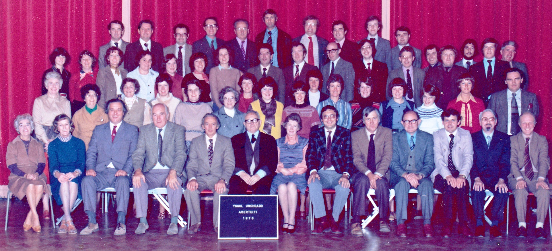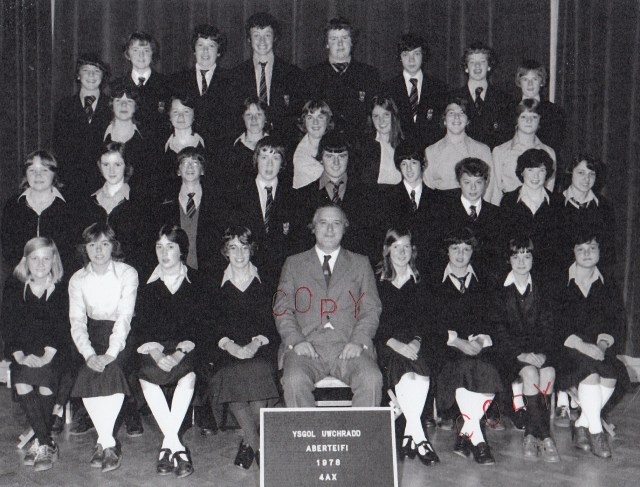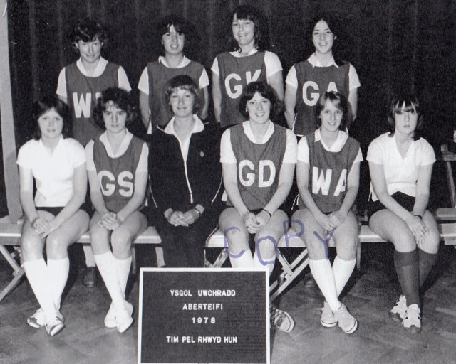 3rd row, l-r: Eiry Blake; Megan Roberts; Mrs Williams; ?; Mary Jones; Mavis Jenkins; ?; Lynette ?; Marilyn ?; Meriel Griffiths; June Powney; Nance Williams; Eryl Davies; Delyth Downey; Joy Jones; Alun Jones.