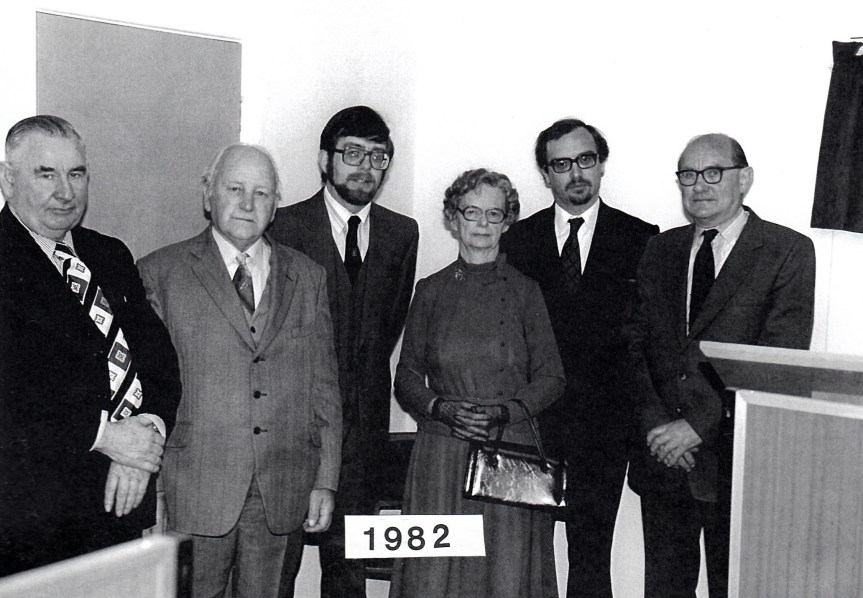 Leslie Green (chair of CARDI), E. V. Lewis, Leonora Lewis (sec. of CARDI), Mrs Harry Jenkins (CARDI committee member), Mr F. Thomas, Dewi Lloyd.