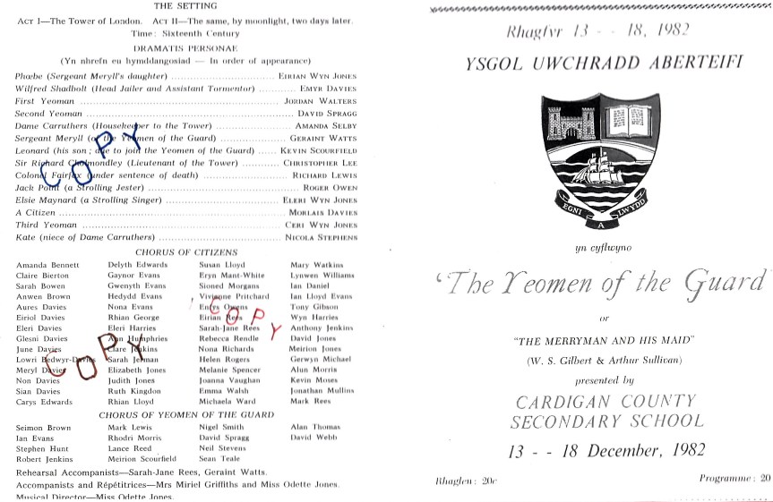 Rhiannon Davies, Ruth Jones, Stuart Ladd, Jane Thomas, Samantha Williams?, Dewi Lloyd, headmaster.