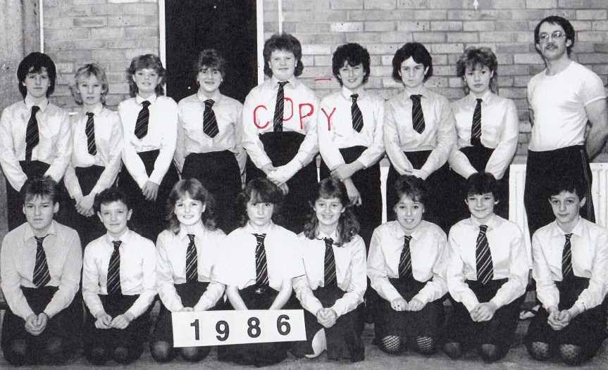 2nd row, l-r: Graham Hope, Eryl Davies, Lynette …, Megan Roberts, Mavis Jenkins, Eiry Jones, Heledd Griffiths, Bethan Jones, Marlene Davies, Carol Williams, Miss Cooke, Trevor Evans.