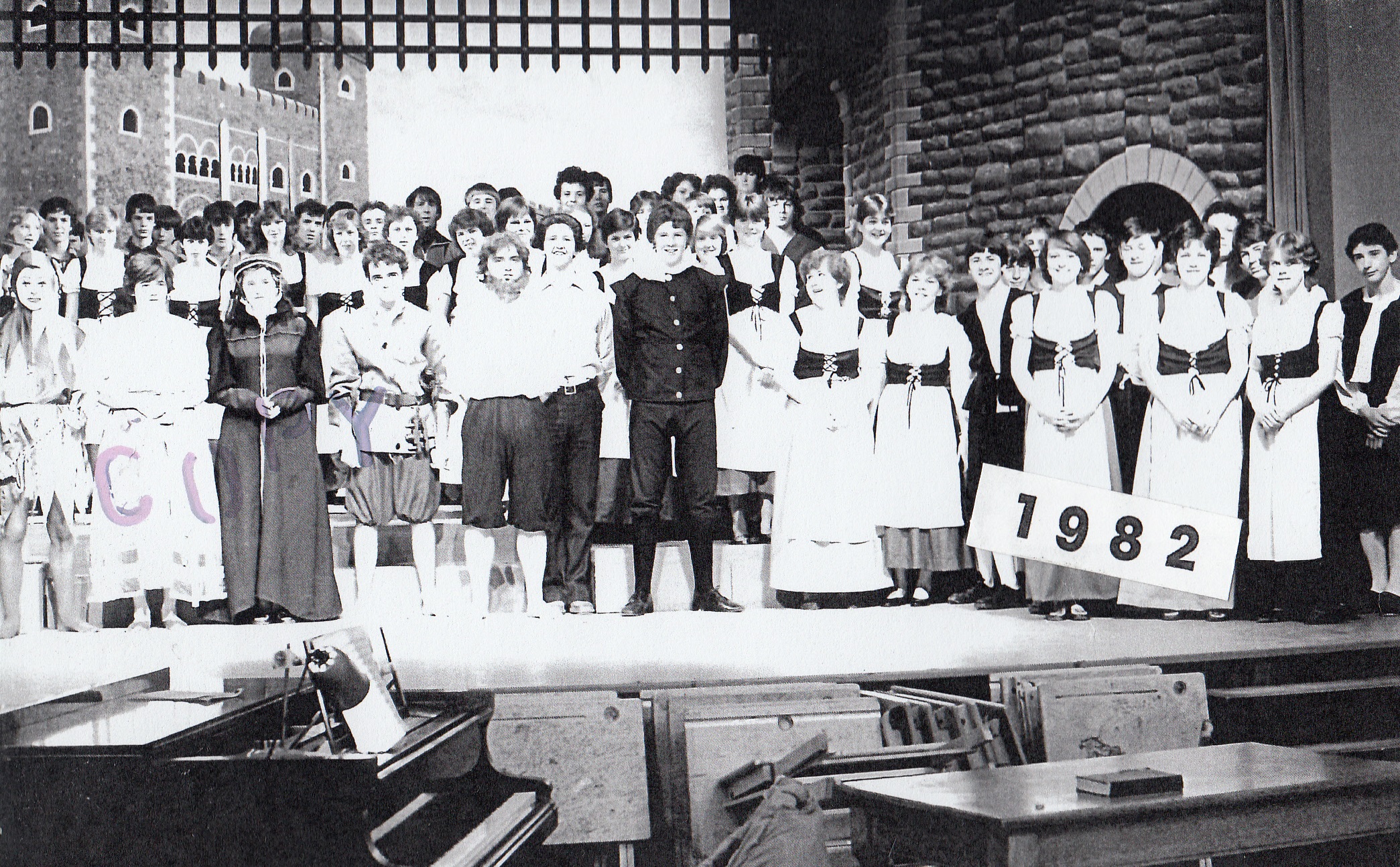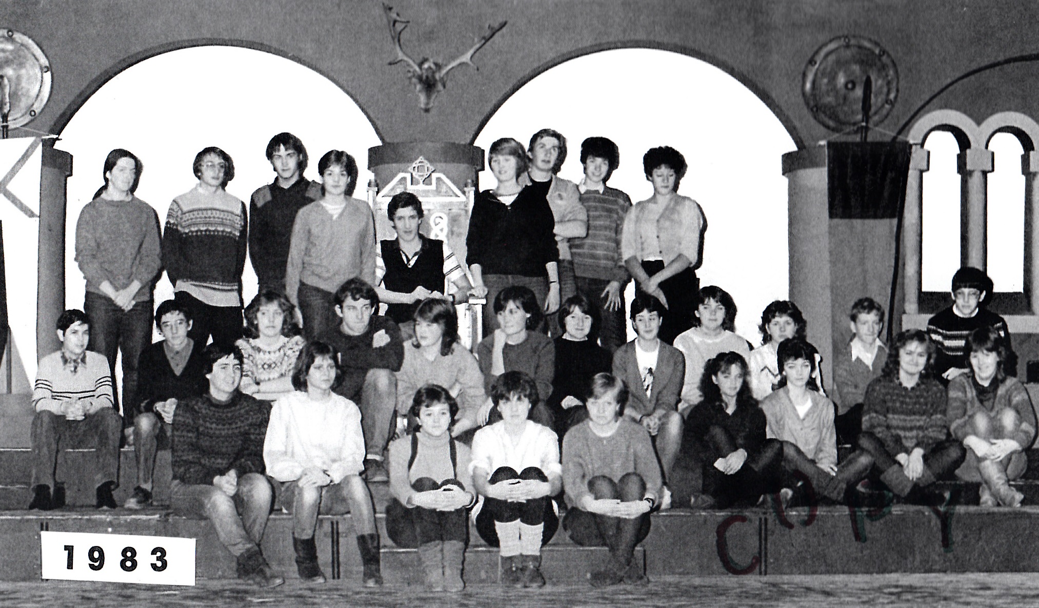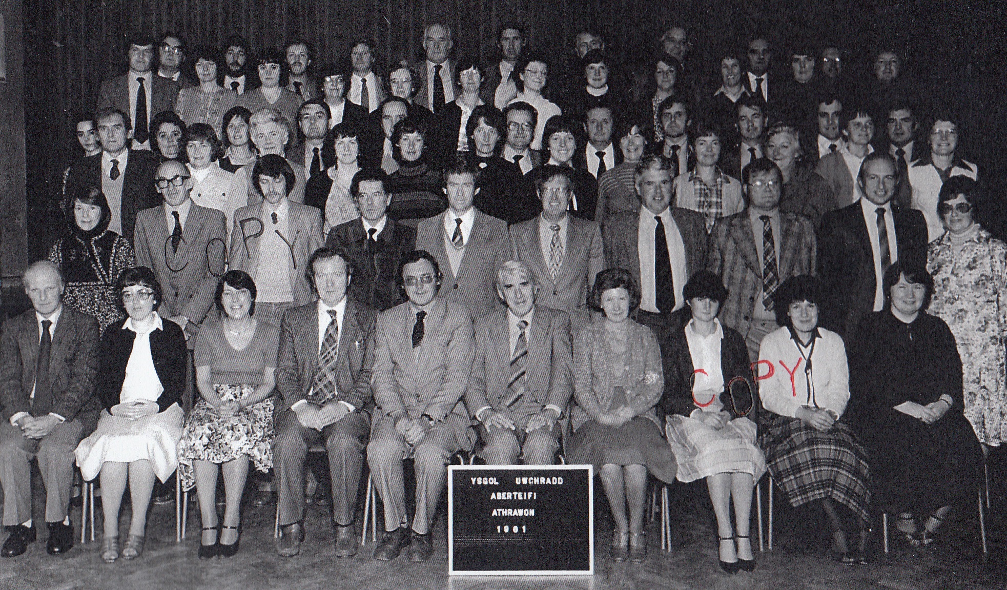 2nd row, l-r: Graham Hope, Eryl Davies, Lynette …, Megan Roberts, Mavis Jenkins, Eiry Jones, Heledd Griffiths, Bethan Jones, Marlene Davies, Carol Williams, Miss Cooke, Trevor Evans.