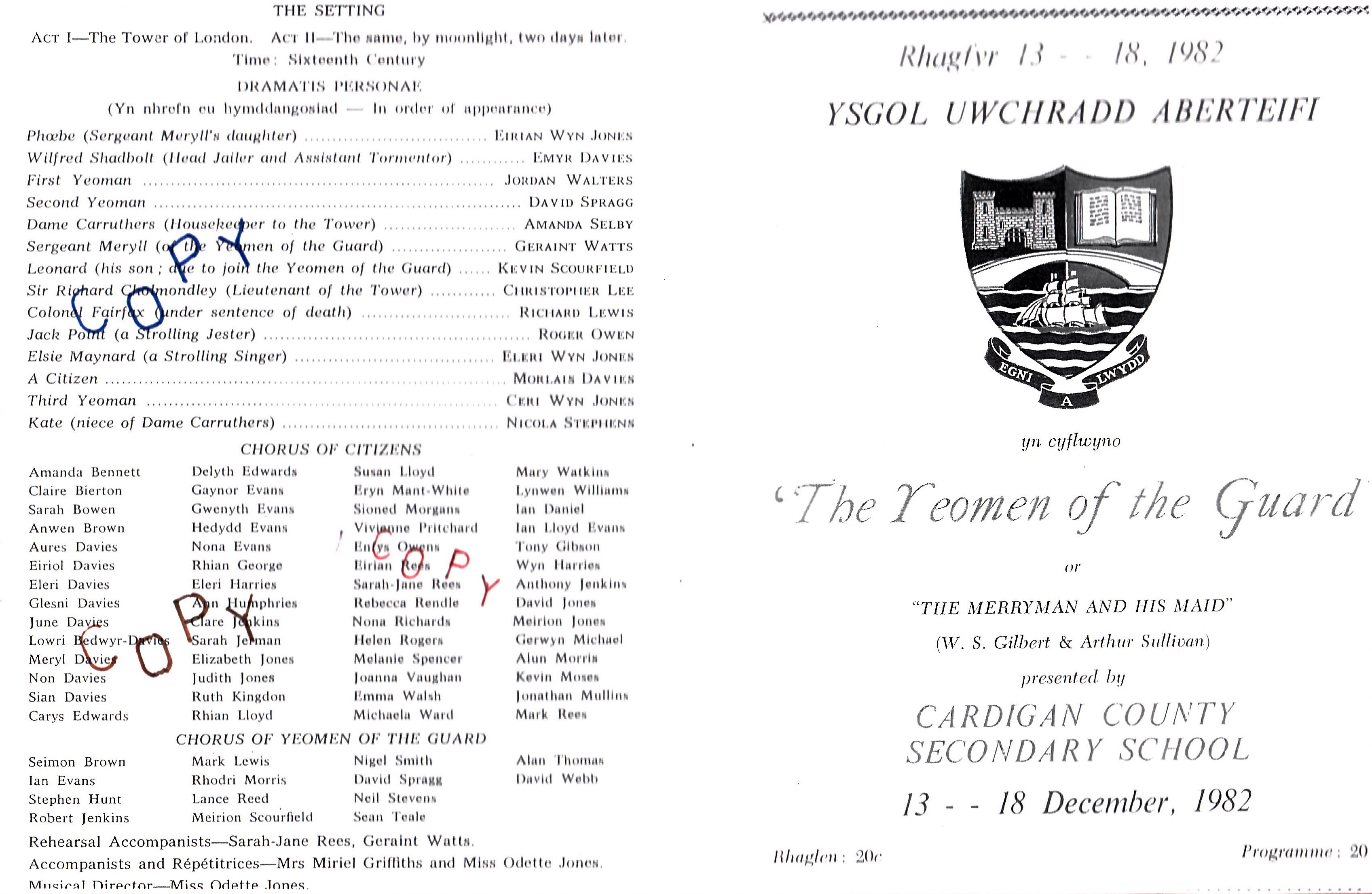 Rhiannon Davies, Ruth Jones, Stuart Ladd, Jane Thomas, Samantha Williams?, Dewi Lloyd, headmaster.