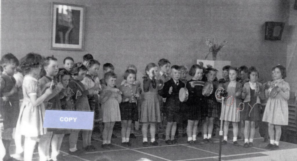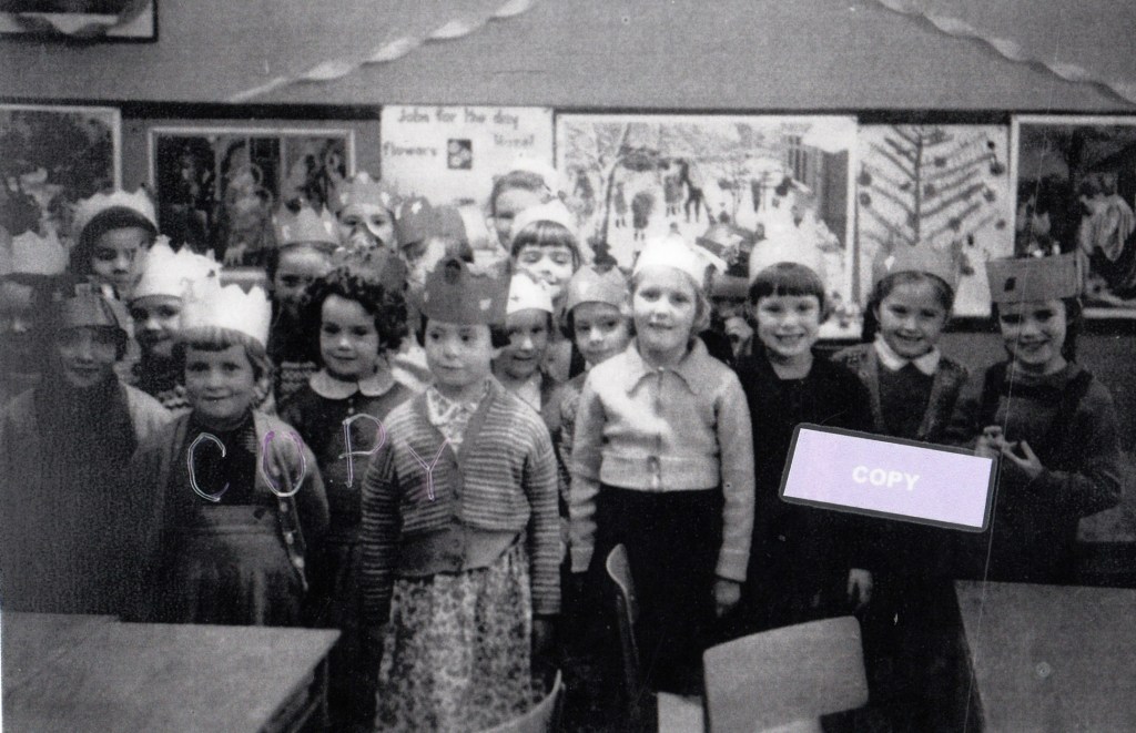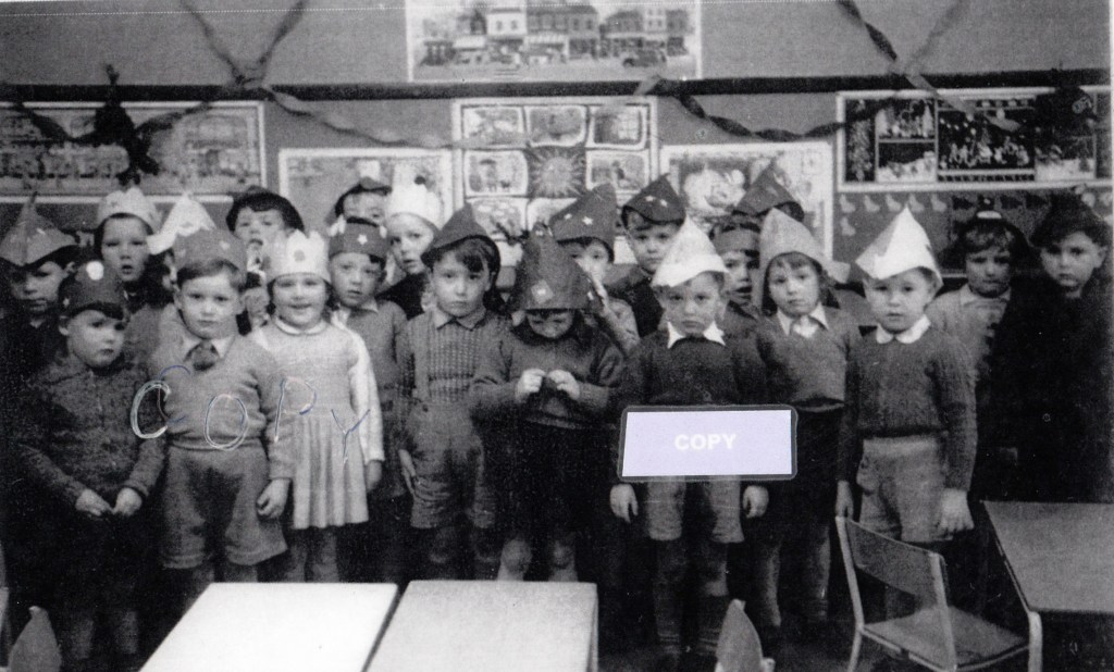 Miss Street, Miss H. J. Williams, Miss G. Morris, Mr W. J. Morgan, Mr G. JamesChristmas 1Class 1Meithrin. l-r front row 3rd Hedydd Thomas [?]; 3rd from right Peter AllenNurseryGirls Class 1Boys English Class 1; front row l-r 5th from left Gwyn Phillips [?]