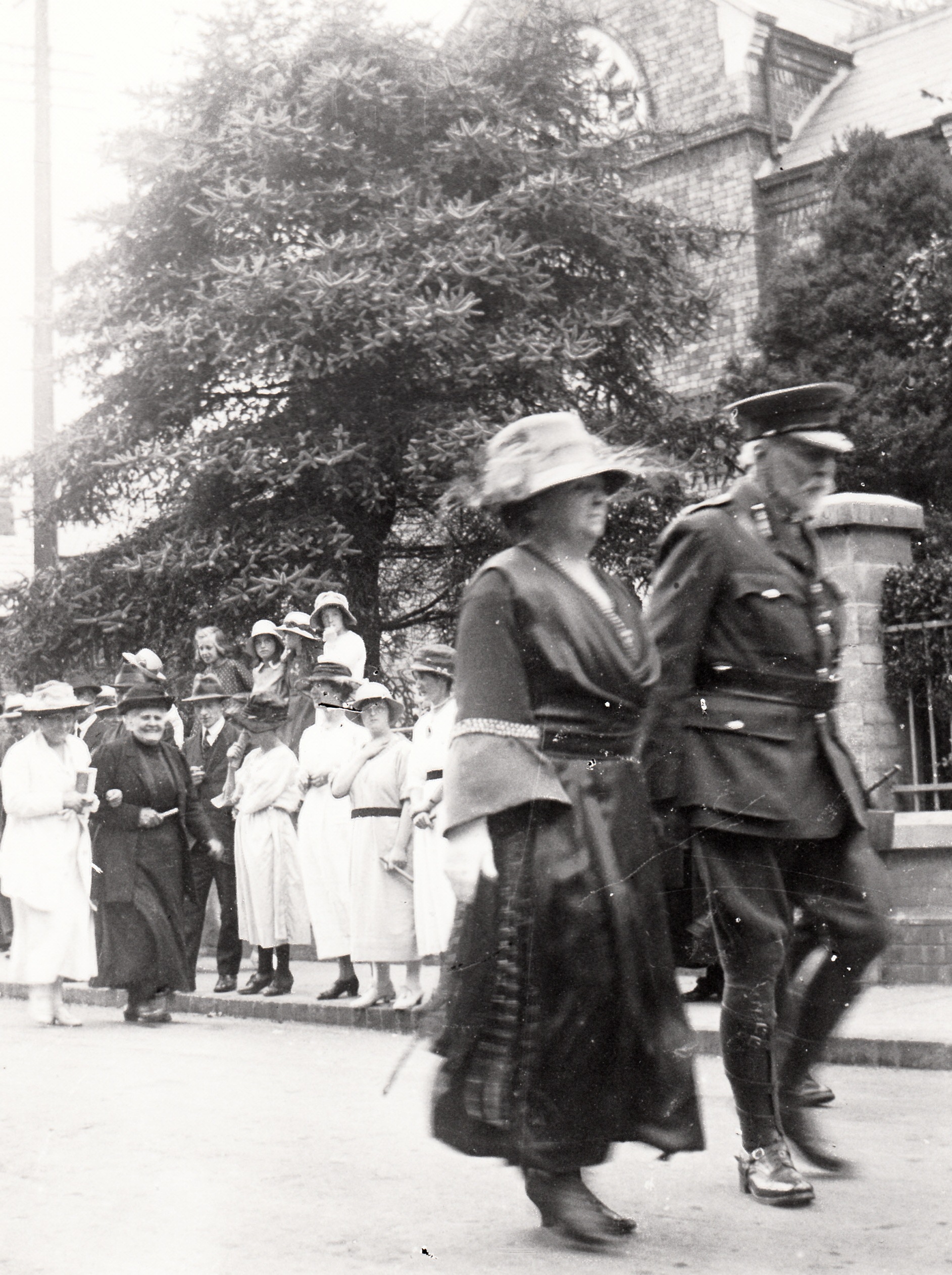 Dame Margaret Lloyd George walking down Priory St on the way to the Hospital