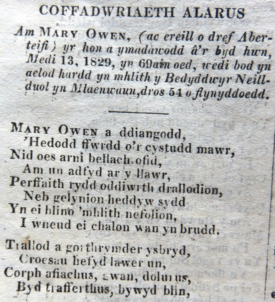 wife of Thomas Llewelyn, Dolwerdd, chemist, High St.